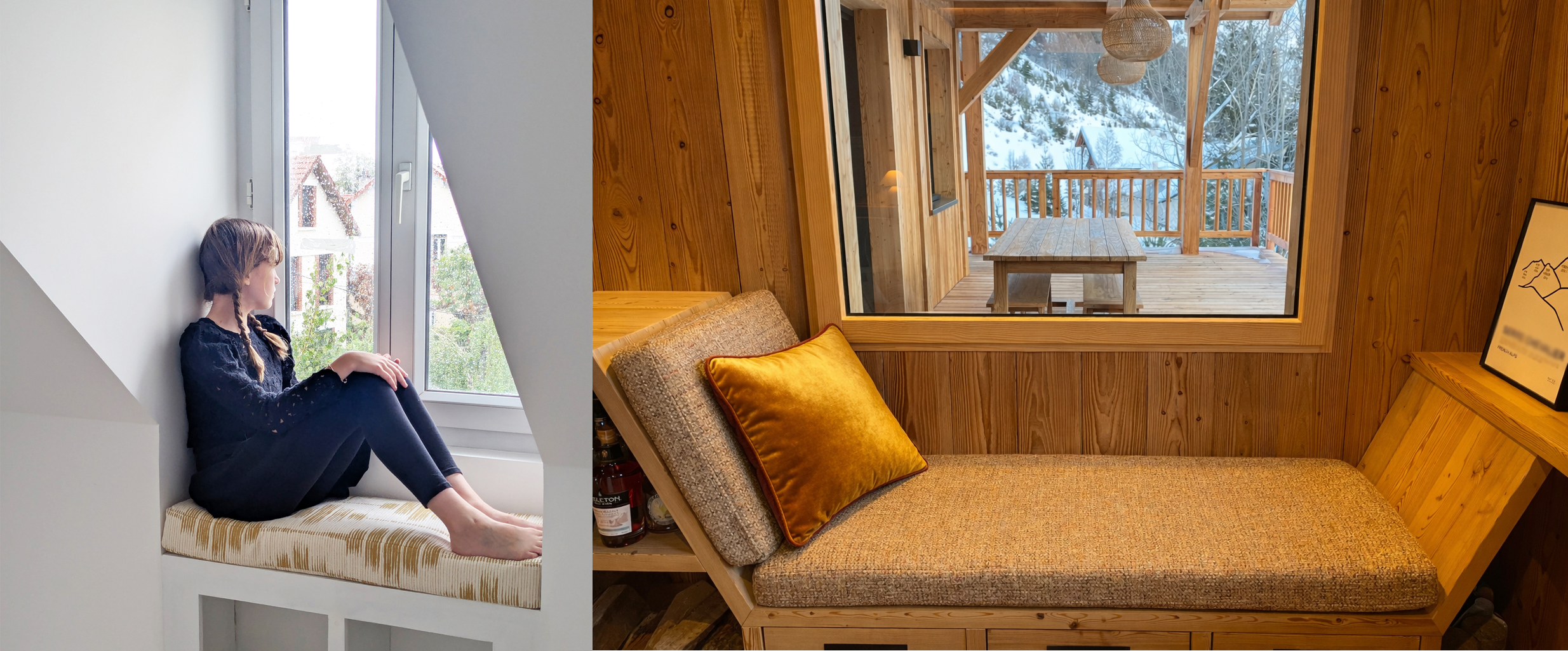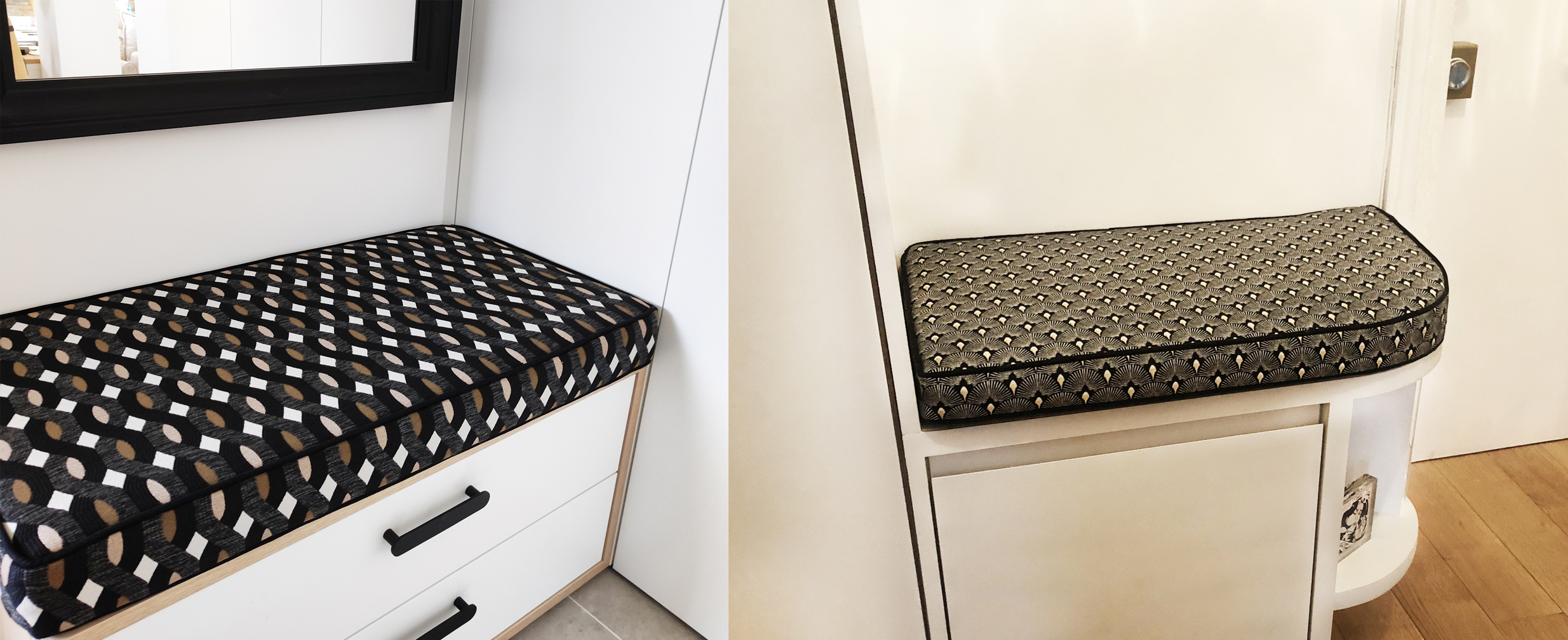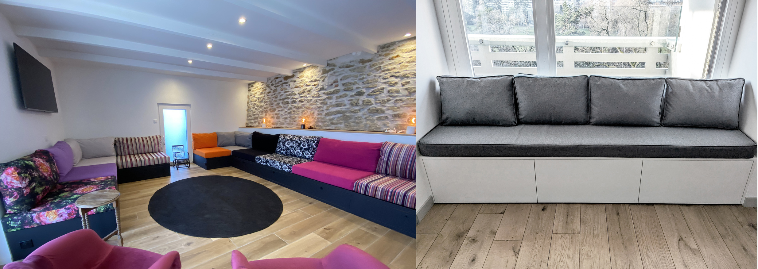 Banquettes entrée, salon, cuisine, coins lecture - fabrication française