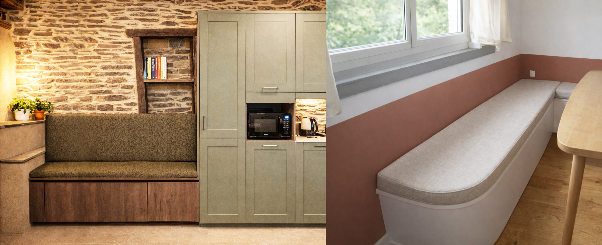 Les banquettes de cuisine ou de salle à manger sont utilisées quotidiennement : confort, résistance et entretien facile sont essentiels.