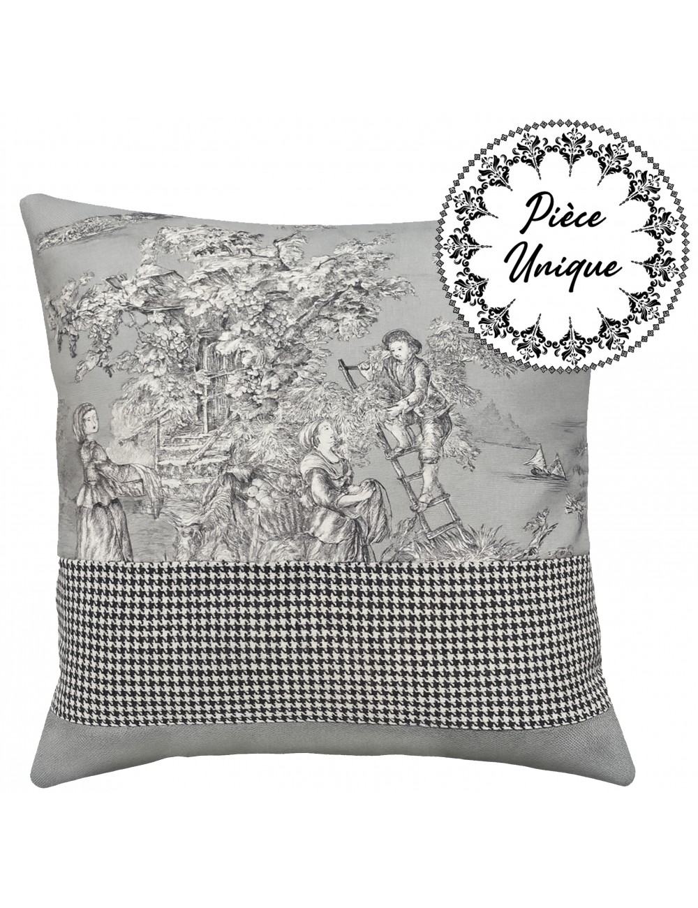Coussin gris perle en toile de Jouy 45x45 cm