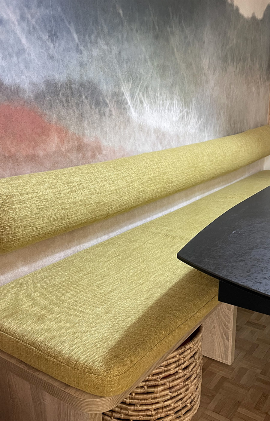 Chez Maison du Coussin, nous sommes spécialiste du coussin du mesure pour banc et banquette. Nous imaginons et fabriquons en France des coussins sur mesure pour vos banquettes, assises, dossiers ou espaces sur-mesure.