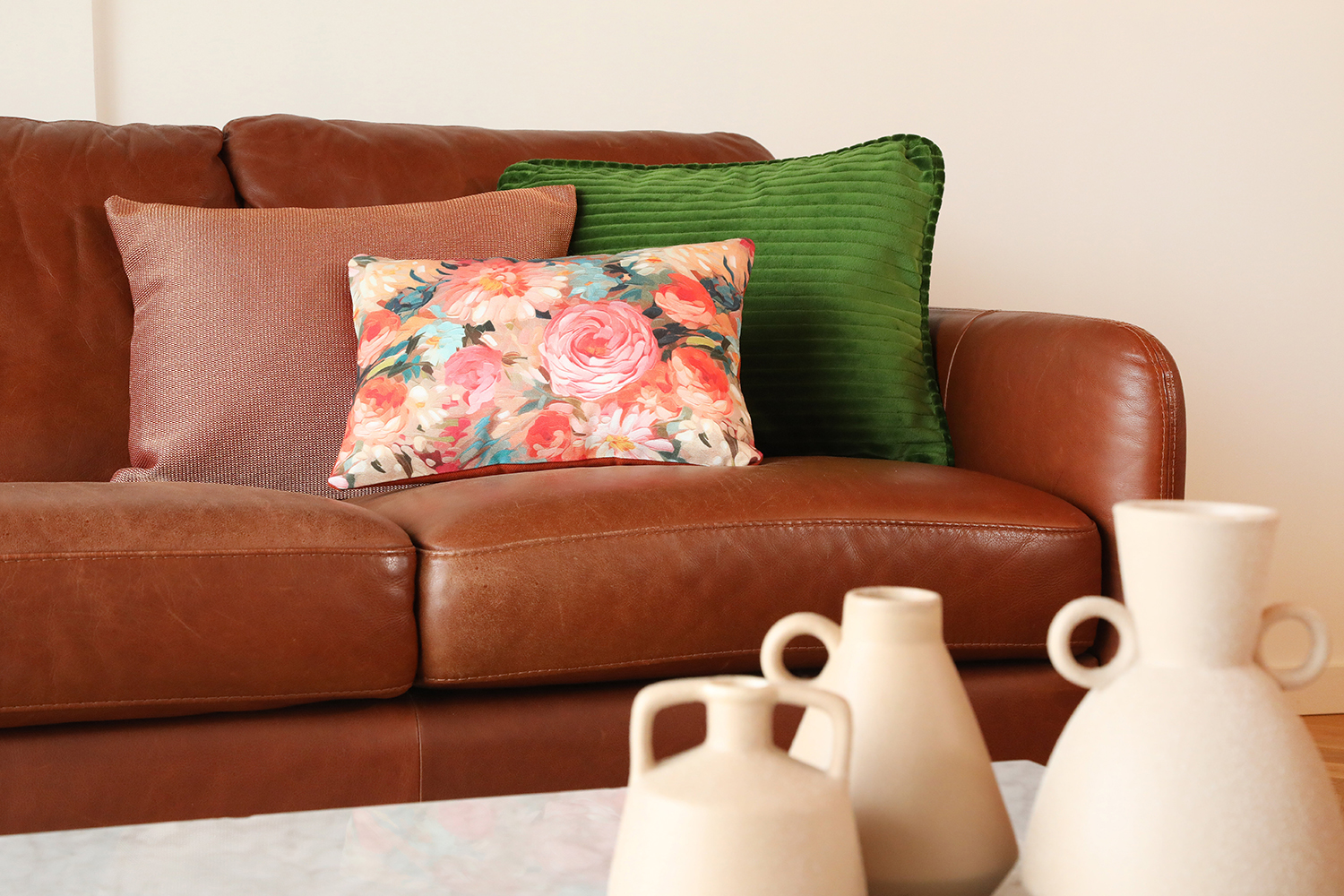 Sur un canapé cuir ou un velours foncé, ces associations apportent relief et personnalité.