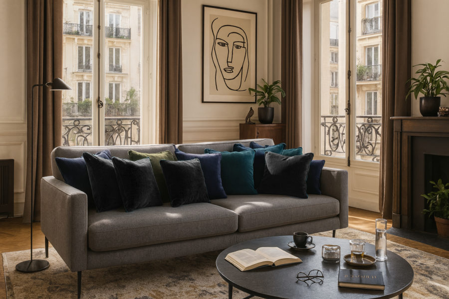Chez Maison du Coussin, cette couleur se décline dans une gamme subtile : du corail rosé au cuivre métallisé, en passant par le taupe doux ou les orangés épicés.